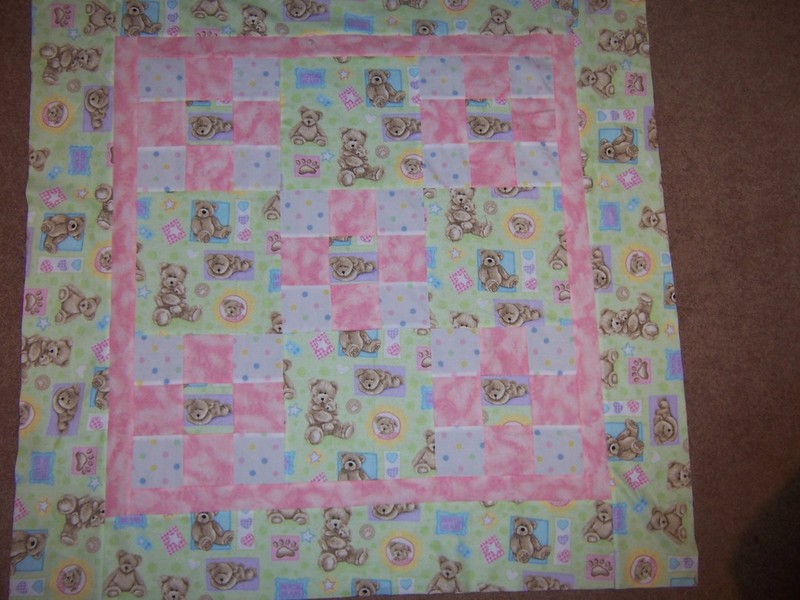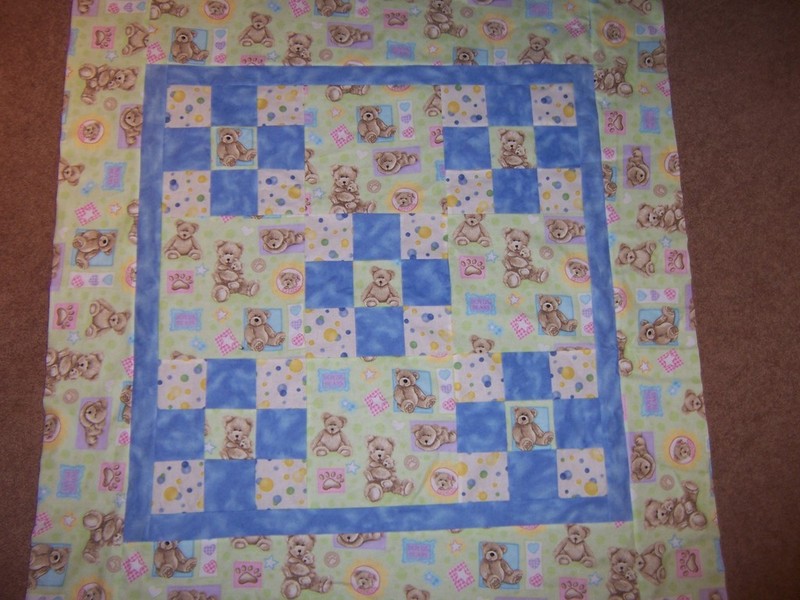 The two quilts below were made for an expectant mother who was having twins - one boy and one girl. Since the nursery was going to accommodate both children for a few years, the theme was "bears". The two quilts were made to show the same theme but different colors.