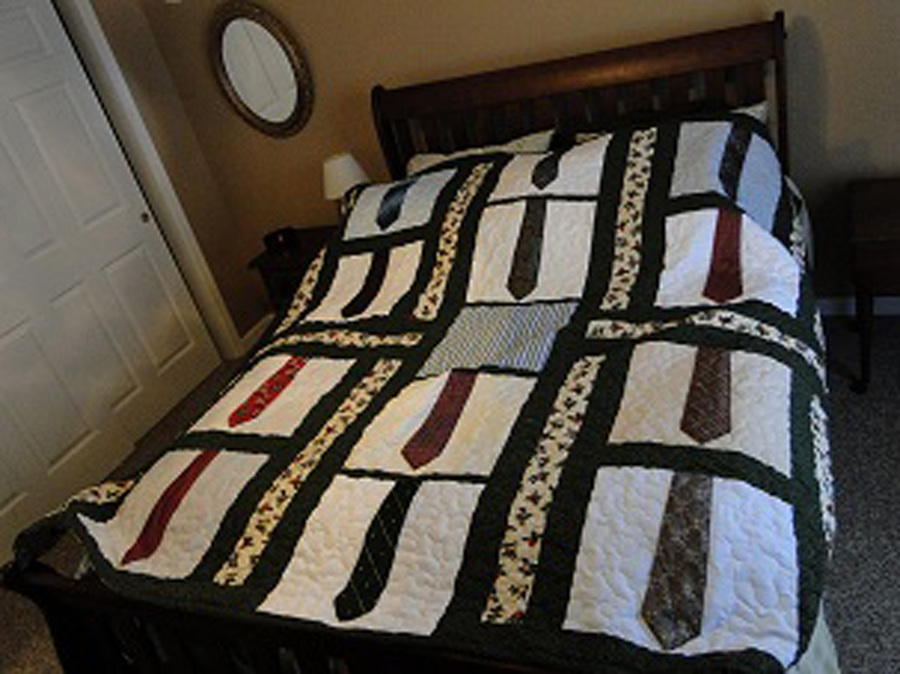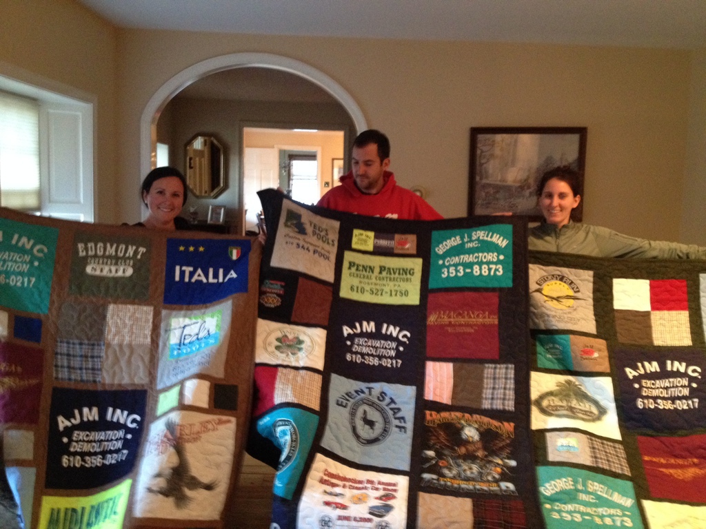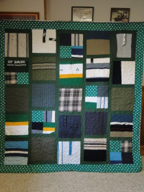 When a loved one dies, it can be difficult to let objects go that remind us of that person. And Clothing sometimes is the hardest thing to discard. What better way to keep those memories and use them at the same time, that with a quilt made out of the clothing. Three siblings now can "Remember Dad' while snuggling under a quilt made just for them